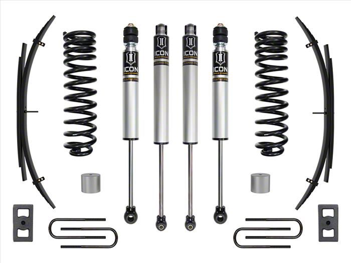 Application. The ICON Vehicle Dynamics 2.50-Inch Suspension Lift System with Expansion Pack fits 2023-2026 4WD 6.8L, 7.3L F-350 Super Duty Single-Rear Wheel models.