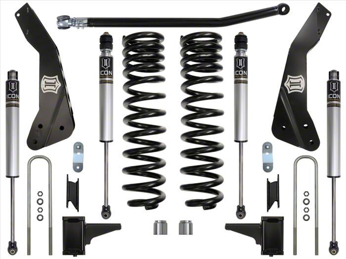Suspension Lift System. Cruise through the highway or conquer the trail in your F-350 with this ICON Vehicle Dynamics 4.50-Inch Suspension Lift System; Stage 1. Designed to improve overall performance over your OEM, it features a sleek compact design that allows for less body roll and ensures proper caster alignment.