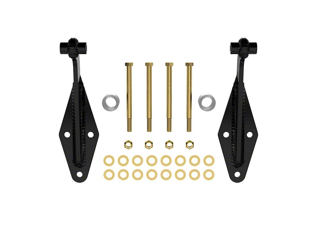 Installation. Installing this kit is a simple bolt‑on process—no welding required. The procedure uses existing factory bolt locations on the frame; minimal disassembly (dropping the wheel and removing the upper shock mount) is needed before bolting in the kit.