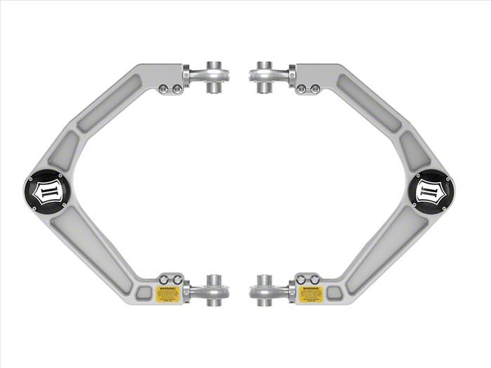 Enhanced Suspension Performance. The ICON Vehicle Dynamics Delta Joint Billet Upper Control Arms are engineered to correct suspension geometry and maintain proper wheel alignment, especially on lifted applications. Designed with on-vehicle caster and camber adjustment, these control arms provide precise handling and optimal suspension tuning.
