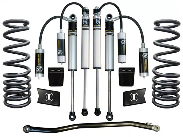 High-Performance Suspension Upgrade. Elevate your 2003-2012 4WD Dodge RAM 2500 with the ICON Vehicle Dynamics Suspension Lift System. This Stage 2 kit delivers a 2.5-inch lift, improving ground clearance, wheel travel, and suspension performance for enhanced handling on and off the road. With compatibility for up to 33-inch tires, it ensures a versatile and capable upgrade for your truck.