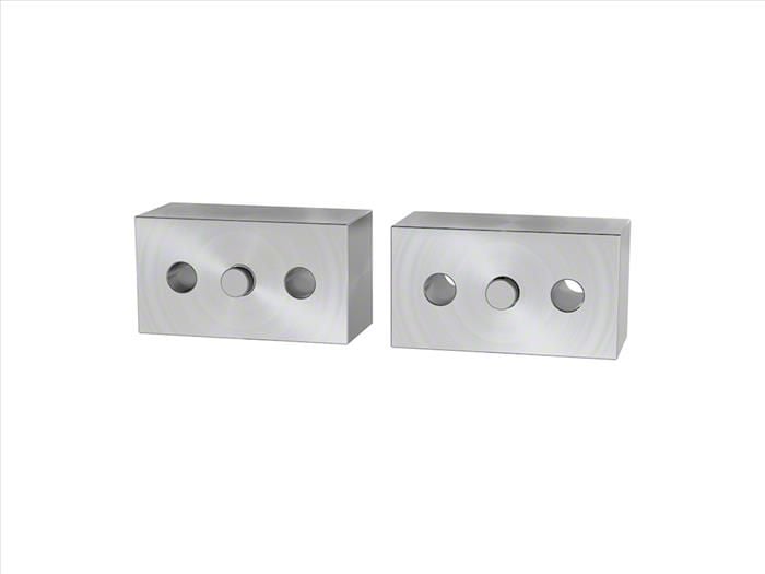 Construction and Appearance. Featuring a raw metal finish, these lift blocks offer rugged durability and a straightforward, no-frills look that matches their tough construction. Engineered for strength and stability, they are built to handle heavy loads and harsh conditions without warping or weakening over time. Their robust profile ensures long-term support and consistent rear-end performance.