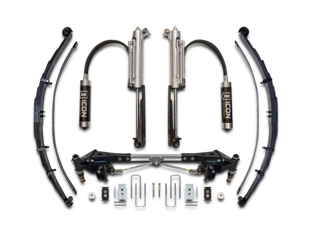 Built for Performance. The RXT 3.0 Remote Reservoir Rear Bypass Shocks come pre-tuned for your application. This system features the industry’s first billet aluminum cross bar which helps stabilize the truck’s frame rails and prevent twisting on impacts. ICON Vehicle Dynamics’ provides a one-year warranty against defects in materials and workmanship. Severe axle wrap is reduced with leaf rebound. The hydro-pneumatic bumpstop prevents bottoming out better than stock as it quickly absorbs energy from impacts.