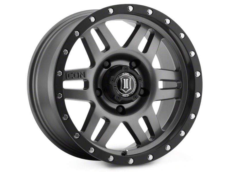 The 17x8.5 ICON Alloys Six Speed Gunmetal 6-Lug Wheel is completed in a high quality gunmetal gray finish for an impressive appearance that will make others green with envy. For added good looks, there is a durable clear coat that is plenty tough to stand up to everyday driving hazards.