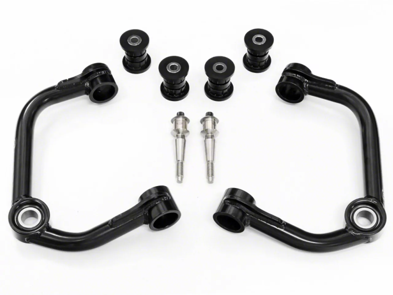 Precisely Built to Be Strong. These tubular uniball upper control arms are precision welded to be strong. They are constructed from 1026 DOM seamless CNC bent tubing and CNC machine pin for a more OEM like fitment. PTFE lined stainless steel uniballs allow for a smooth ride without the worry about factory ball joint failure. The addition of the 2-stage polyurethane bushing kit helps reduce deflection while improving durability of the upper control arm and road response. These upper control arms are covered by a one-year warranty.