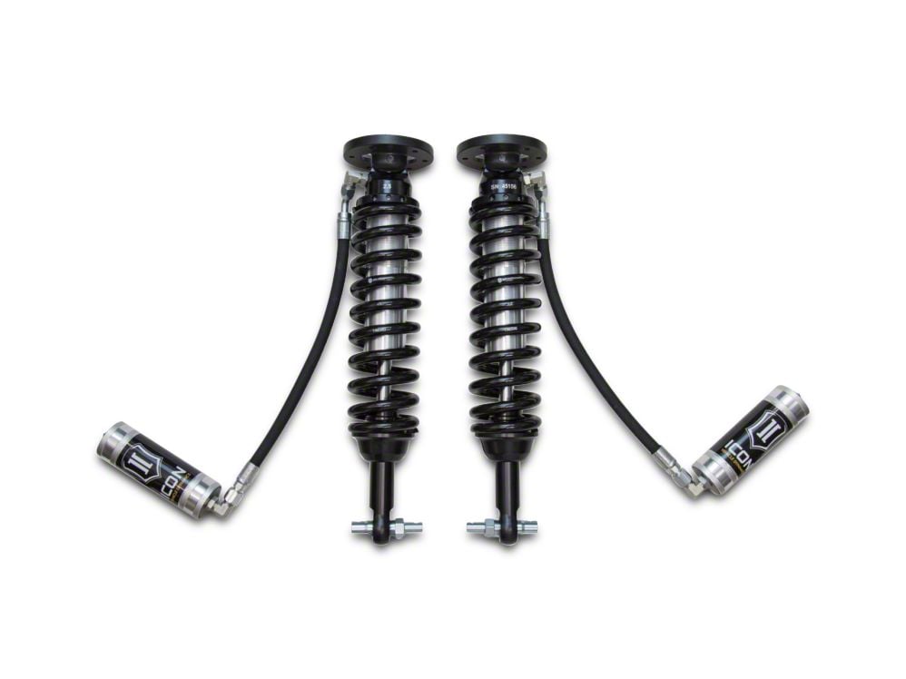 High-End Upgrade to Your Suspension. Your stock suspension kit keeps your rig rolling for the most part. But, if you face bumpy terrain or rough roads often, you know how jarring the ride quality can be. These ICON Vehicle Dynamics V.S. 2.5 Series Front Remote Reservoir Coil-Over Shocks offer a solution. They are designed to upgrade your front end suspension for improved ride quality and control while driving.