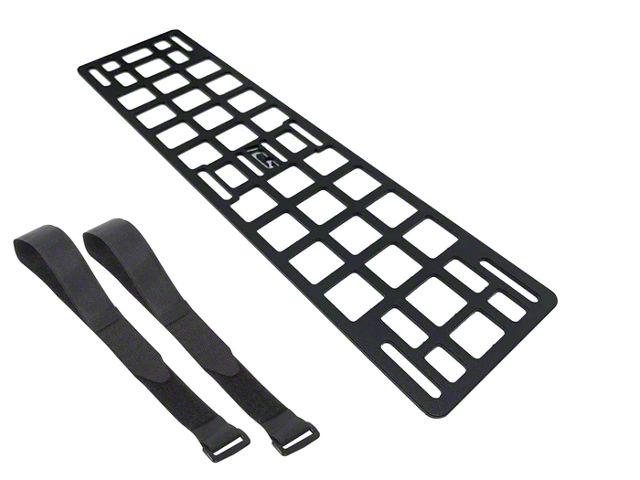 Laser-Cut Aluminum. Crafted with precision, this single visor MOLLE panel measures 16 x 4 inches and boasts premium aluminum construction with a sleek textured black powder-coated finish. The laser-cut CNC machining ensures a precise fit, while (2) fully adjustable nylon Velcro straps provide a secure attachment to your vehicle's sun visor.