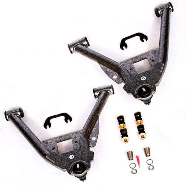 Construction and Appearance. Constructed from durable materials, these control arms are built to last and withstand the rigors of daily driving. They are designed to allow the use of standard upper control arms, ensuring camber correction and maintaining factory ride quality.