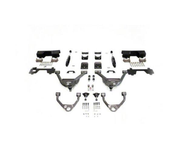 Application. This IHC Suspension Lowering Kit with Bolt-On C-Notch fits all 2014-2018 Chevrolet Silverado 1500 Double Cab and Crew Cab Models with Stock Cast Aluminum or Stamped Steel Control Arms.