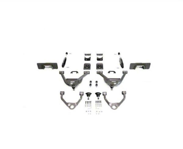 Construction and Appearance. This kit includes nitrogen-charged drop shocks and U-bolts, designed for durability and long-lasting use. They ensure there is no swaying or high-speed wobble, providing a smooth and controlled driving experience. The control arm aligns perfectly with factory specifications, ensuring that the vehicle’s appearance is sleek yet rugged.