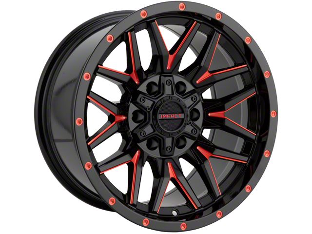 Impact Wheels 819 Gloss Black and Red Milled 5-Lug Wheel; 17x9; -12mm OffsetThis wheel features a sleek and durable design, ideal for enhancing the aesthetic and style of your vehicle. Its quality craftsmanship ensures a perfect combination of form and function, suitable for any driver seeking a balance of style and dependability. Its high-quality finish ensures resistance against corrosion and wear over time. Designed for optimal visual appeal, this wheel complements a variety of vehicle styles.