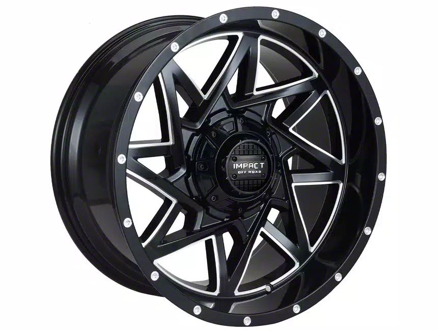 This 20x10 Impact Wheels 821 Gloss Black Milled 6-Lug Wheel is completed in a high-quality gloss black finish with steel milled accents that will create a striking appearance. There's a durable clear coat that protects against driving hazards.