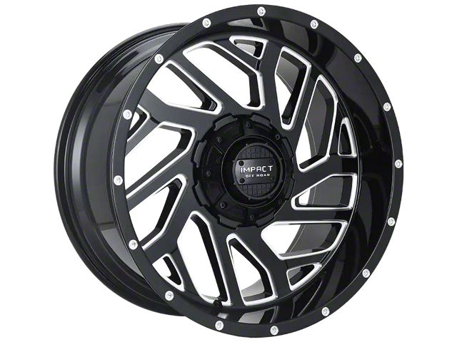 Impact Wheels 823 Gloss Black Milled 6-Lug Wheel; 20x10; -12mm Offset offers a sleek and modern design that enhances the visual appeal of any vehicle. Crafted with attention to detail, this wheel merges aesthetic elegance with a robust build, making it a fitting choice for those seeking a blend of style and durability.