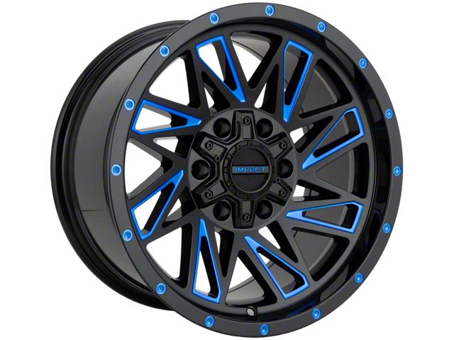 Impact Wheels 814 Gloss Black and Blue Milled 6-Lug Wheel; 17x9; 0mm OffsetThis wheel features a sleek and durable design, ideal for enhancing the aesthetic and style of your vehicle. Its quality craftsmanship ensures a perfect combination of form and function, suitable for any driver seeking a balance of style and dependability. Its high-quality finish ensures resistance against corrosion and wear over time. Designed for optimal visual appeal, this wheel complements a variety of vehicle styles.