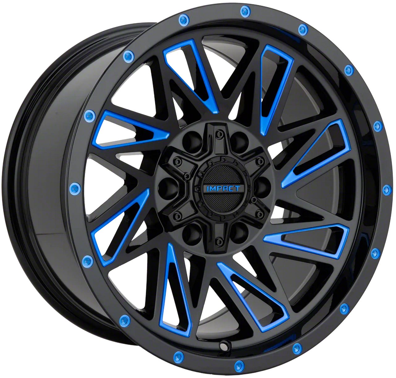 Impact Wheels 814 Gloss Black and Blue Milled 6-Lug Wheel; 17x9; 0mm OffsetThis wheel features a sleek and durable design, ideal for enhancing the aesthetic and style of your vehicle. Its quality craftsmanship ensures a perfect combination of form and function, suitable for any driver seeking a balance of style and dependability. Its high-quality finish ensures resistance against corrosion and wear over time. Designed for optimal visual appeal, this wheel complements a variety of vehicle styles.