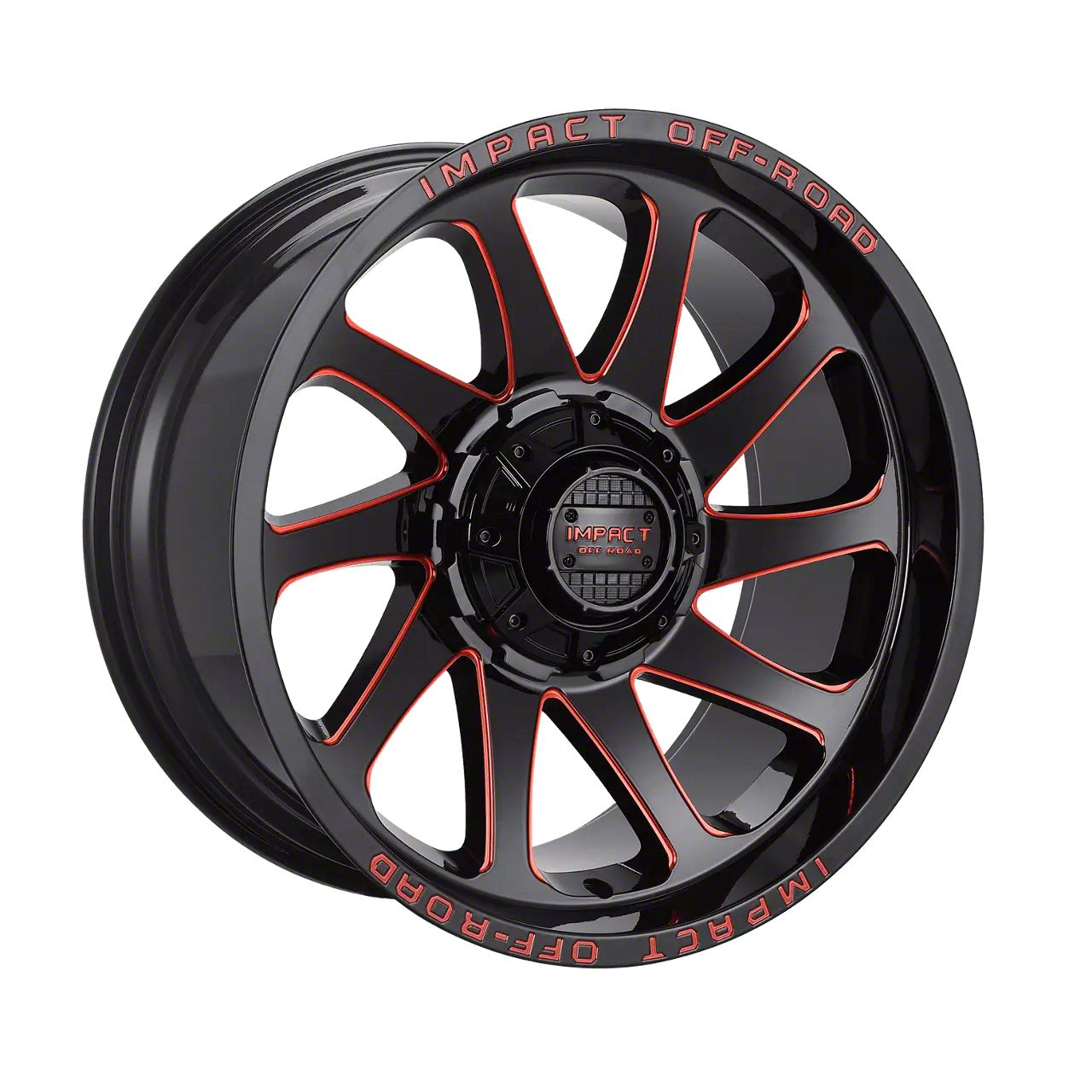 Impact Wheels 825 Gloss Black and Red Milled 6-Lug Wheel; 20x10; -12mm Offset. The Impact Wheels 825 Gloss Black and Red Milled 6-Lug Wheel offers a striking balance of style and refinement. Its unique design accentuates the vehicle's aesthetic, while the premium construction underscores its robust nature. This wheel is a perfect choice for those seeking both elegance and a strong visual statement.