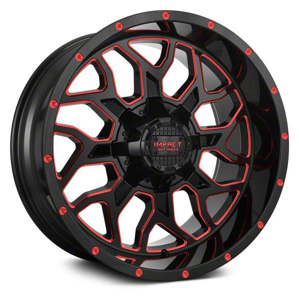 The 20x10 Impact Wheels 813 Gloss Black and Red Milled 6-Lug Wheel; ; -12mm Offset is given a gloss black finish to keep your wheel looking as sharp as its design. This wheel’s red milled steel accents are where it really shines through, and quite literally.