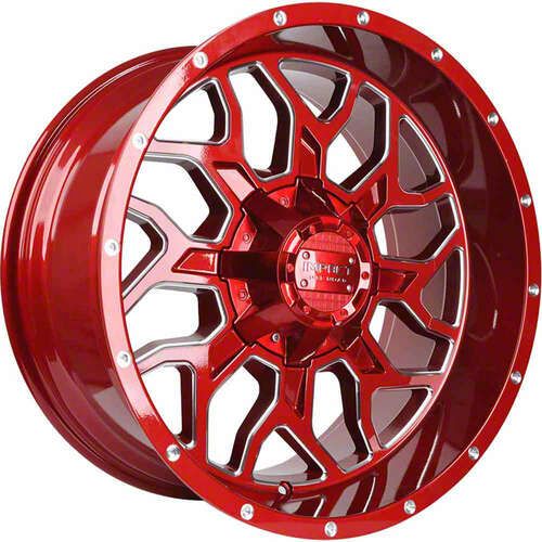 The 20x10 Impact Wheels 813 Red Milled 6-Lug Wheel underwent a thorough finishing process with certain coatings providing added protection against environmental elements and daily wear. Aesthetically, this finish can significantly enhance the wheel's appearance, making it a standout feature.