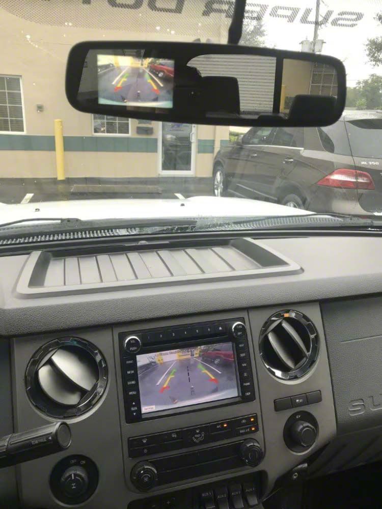 Infotainment Ford Rear View Mirror Backup Camera Image Reroute Kit with Factory Radio Interface (11-16 F-250 Super Duty)