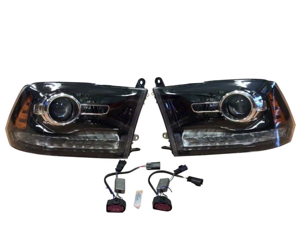 Application. These Infotainment Factory Projector Headlights come in pairs and fit 2013-2018 Dodge RAM 1500 models with factory halogen quad headlights. They are perfect for RAM owners looking to upgrade their vehicle’s lighting with high-quality, factory-built projector headlights.