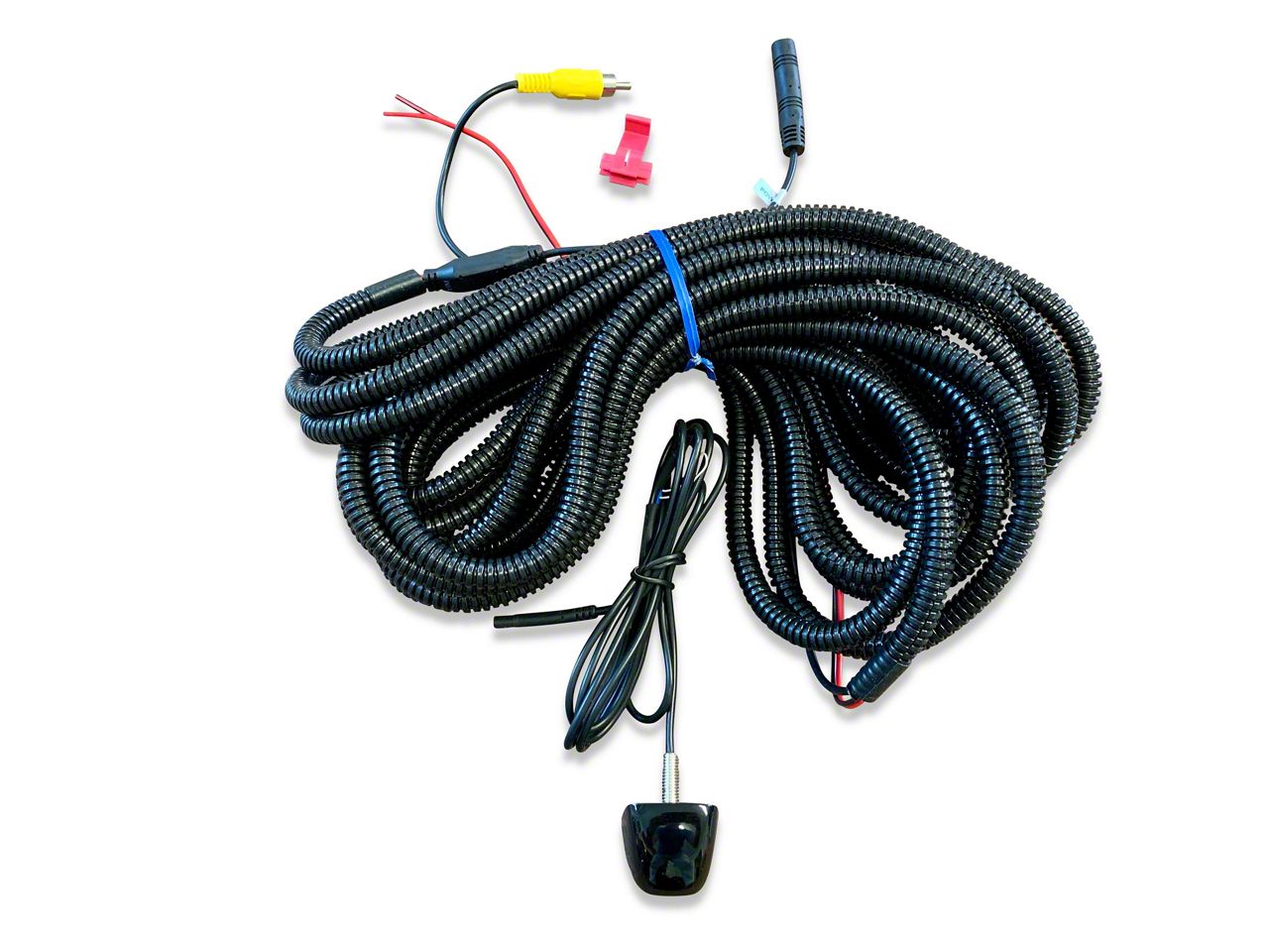 Installation with Minor Drilling. This Front Camera attaches to the front grille with minor drilling required. The wiring harnesses connect to the factory electronic system with light electrical skills required. This kit is compatible with any aftermarket monitor as the harness terminates with an RCA connector.