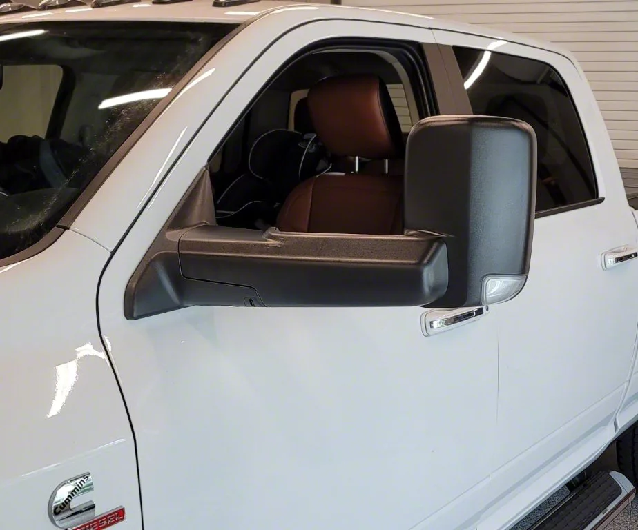 Durable Functional Design. The Infotainment Power Folding Towing Mirrors are an essential upgrade for your vehicle, combining style and functionality. These mirrors feature a Blind Spot Monitoring function, enhancing your driving safety by providing improved visibility and awareness of surrounding vehicles. Crafted from automotive-grade ABS plastic, they offer exceptional durability and longevity. Their textured black finish not only adds a sleek and modern look to your vehicle but also provides superior resistance to the elements, ensuring they can withstand any climate or weather conditions. Whether you're towing trailers, maneuvering in tight spaces, or simply seeking to enhance your vehicle's appearance and safety, these power folding towing mirrors are a reliable choice for a wide range of driving needs.
