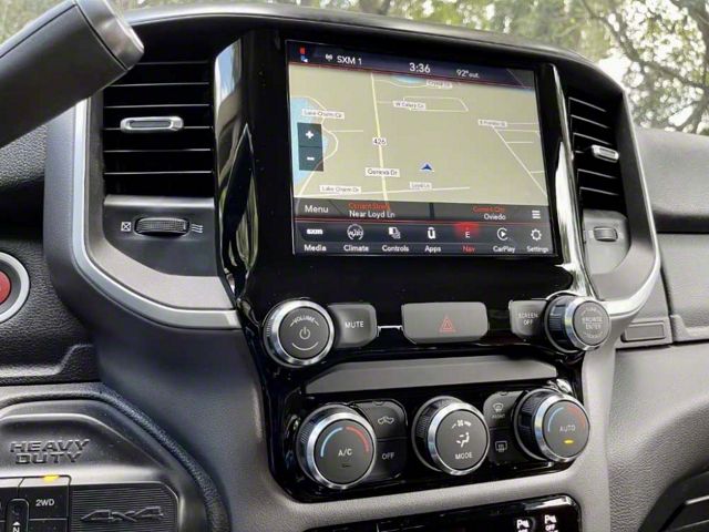 Application. The Infotainment UAV Radio Uconnect 4C NAV with 8.40-Inch Display, Apple CarPlay and Android Auto Upgrade fits 2019-2020 RAM 1500 Rebel models with Black Interior Accents.