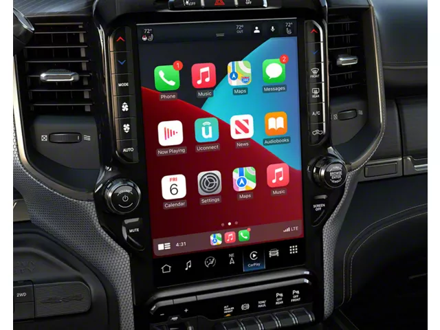 Advanced Navigation and Connectivity Upgrade. The Infotainment UBQ Uconnect 5 NAV with 12-Inch Touchscreen provides your RAM 1500 with a larger, more visible display and advanced navigation features. This system integrates Apple CarPlay and Android Auto for seamless smartphone connectivity, allowing you to access music, maps, and hands-free communication easily.