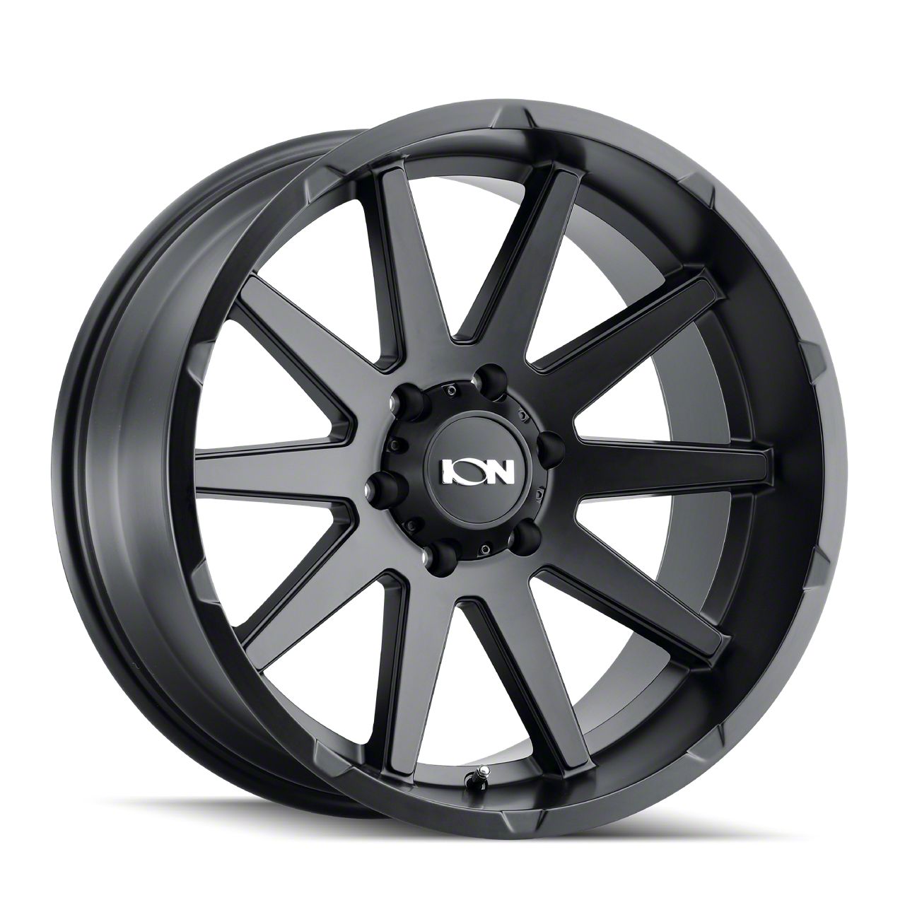 ION Wheels 143 Matte Black 8-Lug Wheel; 18x9; 18mm Offset is a perfect blend of style and rugged design, making it a standout choice for those looking to enhance their vehicle's aesthetic appeal. Its bold, dark metallic finish pairs seamlessly with a wide variety of vehicle styles, offering both modernity and durability. Built by ION Wheels, this wheel is designed to elevate your vehicle's appearance with its robust presence.