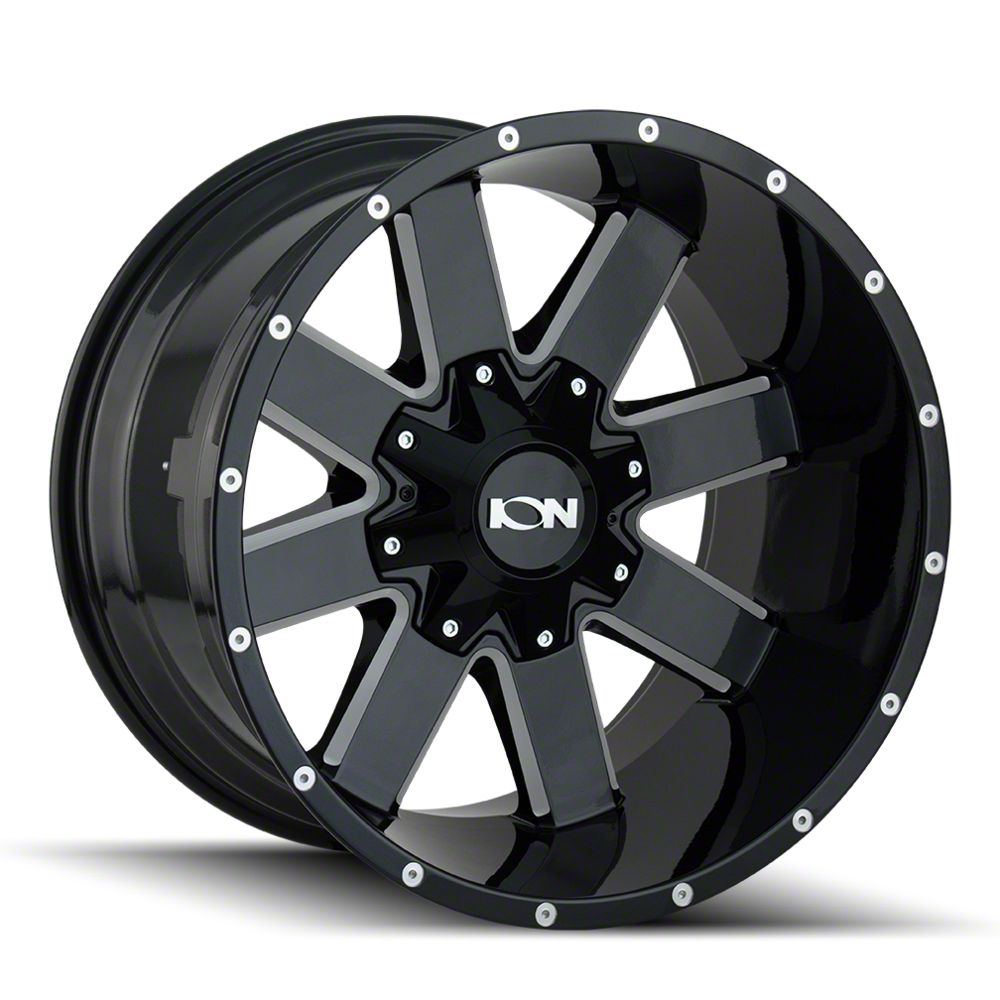 This 20x9 ION Wheels TYPE 141 Gloss Black Milled 6-Lug Wheel is completed in a high-quality gloss black finish with steel milled accents that will create a striking appearance. There's a durable clear coat that protects against driving hazards.