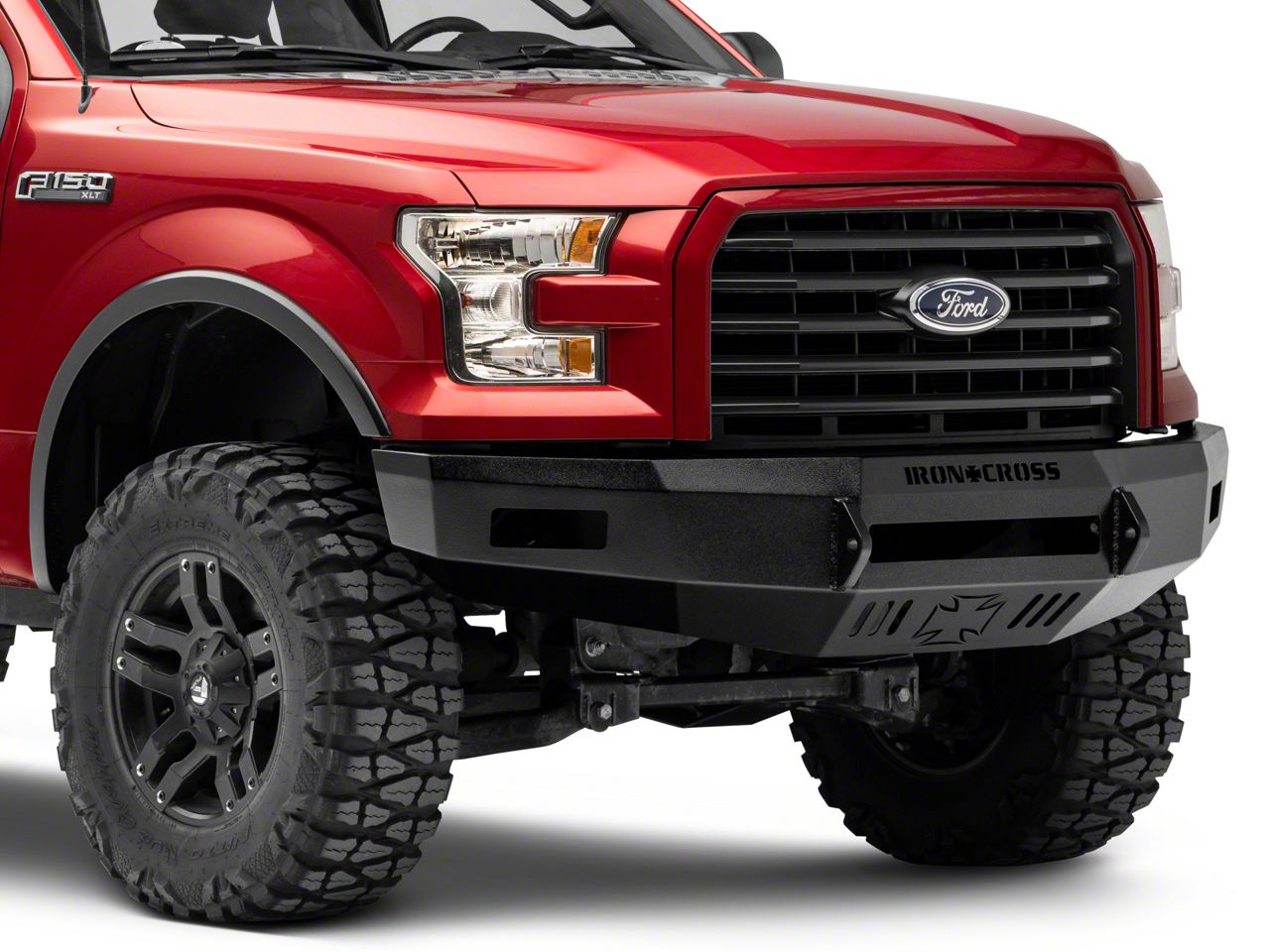 Ideal Upgrade. If you're searching for an easy way to improve the style of your 2015-2017 Ford F-150 so that you no longer blend in with the pack, replace its boring stock bumper with Iron Cross' Low Profile Front Bumper. This hardcore bumper is designed for the street and the trail, boasting a powerful, heavy-duty build that protects your truck's front end as well as a low profile, slim design that adds an aggressive OE style.