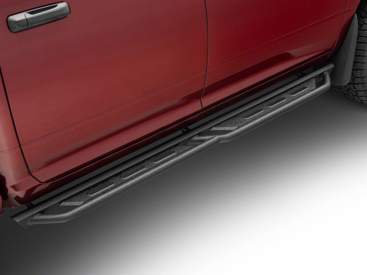 Carbon Steel Steps. Engineered from high-grade carbon steel, these rocker steps offer exceptional strength and durability for long-lasting performance. Covered with a black textured powder coat finish, they not only protect against rust and corrosion but also enhance the overall aesthetics of your truck.
