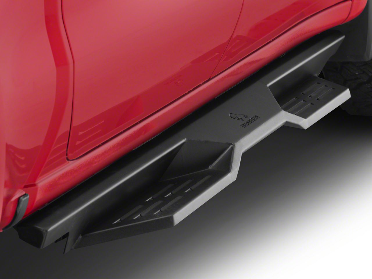 Convenience and Safety. The Defender Step Running Boards are the perfect combination of style, convenience, and durability. These running boards are designed to provide you with a safer and more convenient way to get in and out of your vehicle, while also offering an additional layer of protection to your vehicle's body. These running boards feature a wing-shaped 5-inch drop step pad design, providing you with a comfortable and secure stepping surface. The mold-formed non-slip strip with a 6-inch width further adds to your safety while getting in and out of the vehicle. In addition to providing a convenient stepping surface, these running boards also function as side steps and nerf bars, allowing you to easily access the roof of your vehicle or to load and unload cargo.