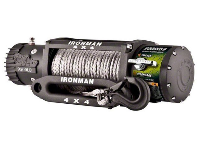 Application. This Ironman 4x4 9,500 lb. 12v Electric Monster Winch with Synthetic Rope fits universal applications.