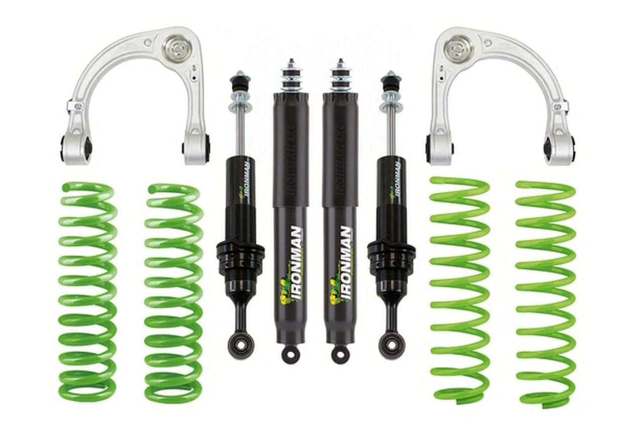 Superior Strength and Reliability. Moreover, the pro-forged upper control arms are made with 6082 T6 aluminum for strength and durability, while the hardened zinc-coated shocks are corrosion-resistant and designed to withstand even the most challenging terrain. Don't let anything stand in your way - get the Ironman 4x4 2.50-Inch Foam Cell Pro Medium Load Suspension Lift Kit with Shocks today.