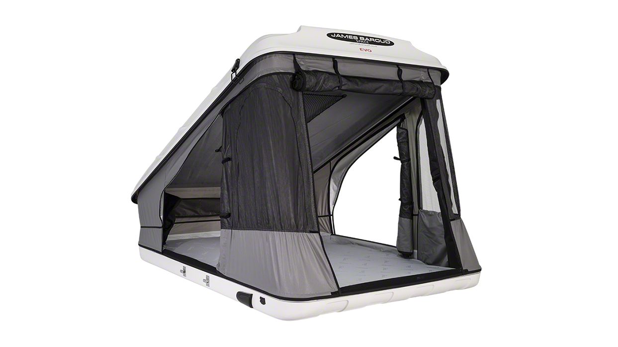 Description. Taking again in turn the concept of the opening in Shell of the Discovery, the James Baroud Space roof top tent has been designed to bring more ease to the tallest users thanks to a frontal compass with 40cm for your feet or head.
