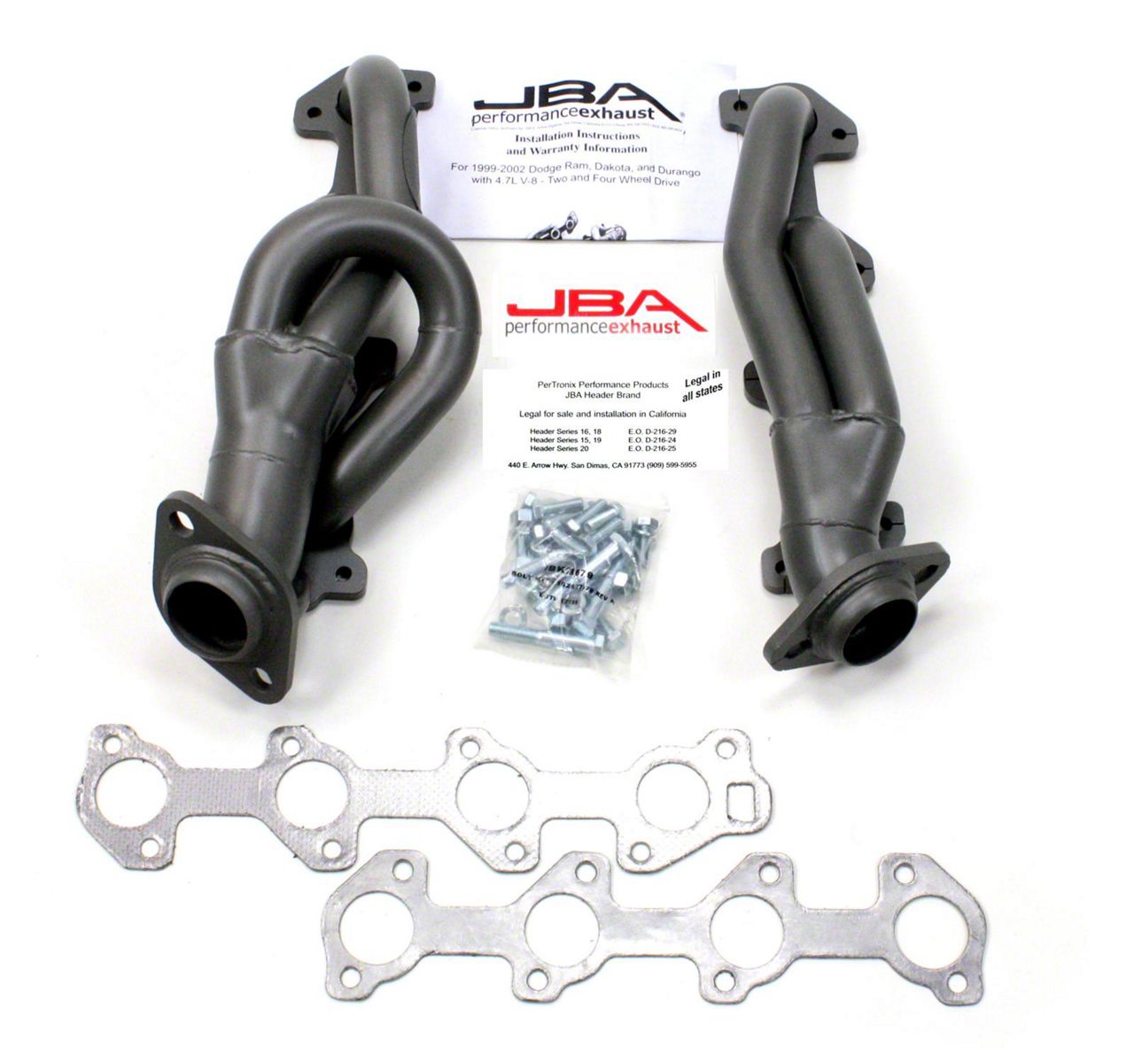JBA shorty headers are one of the foremost performance upgrades you can bestow upon your beloved car, truck, or SUV. JBA Headers are significantly less restrictive than stock manifolds and dramatically increase the power and efficiency of your engine. Each header is constructed from durable stainless steel to endure the abuse of racing, towing, and daily driving – built to withstand it all. JBA’s proprietary Firecone collector design uses race proven technology for producing maximum power and torque gains where you drive most. Each system includes factory style emission connections and high-quality hardware for a professional no-leak installation.