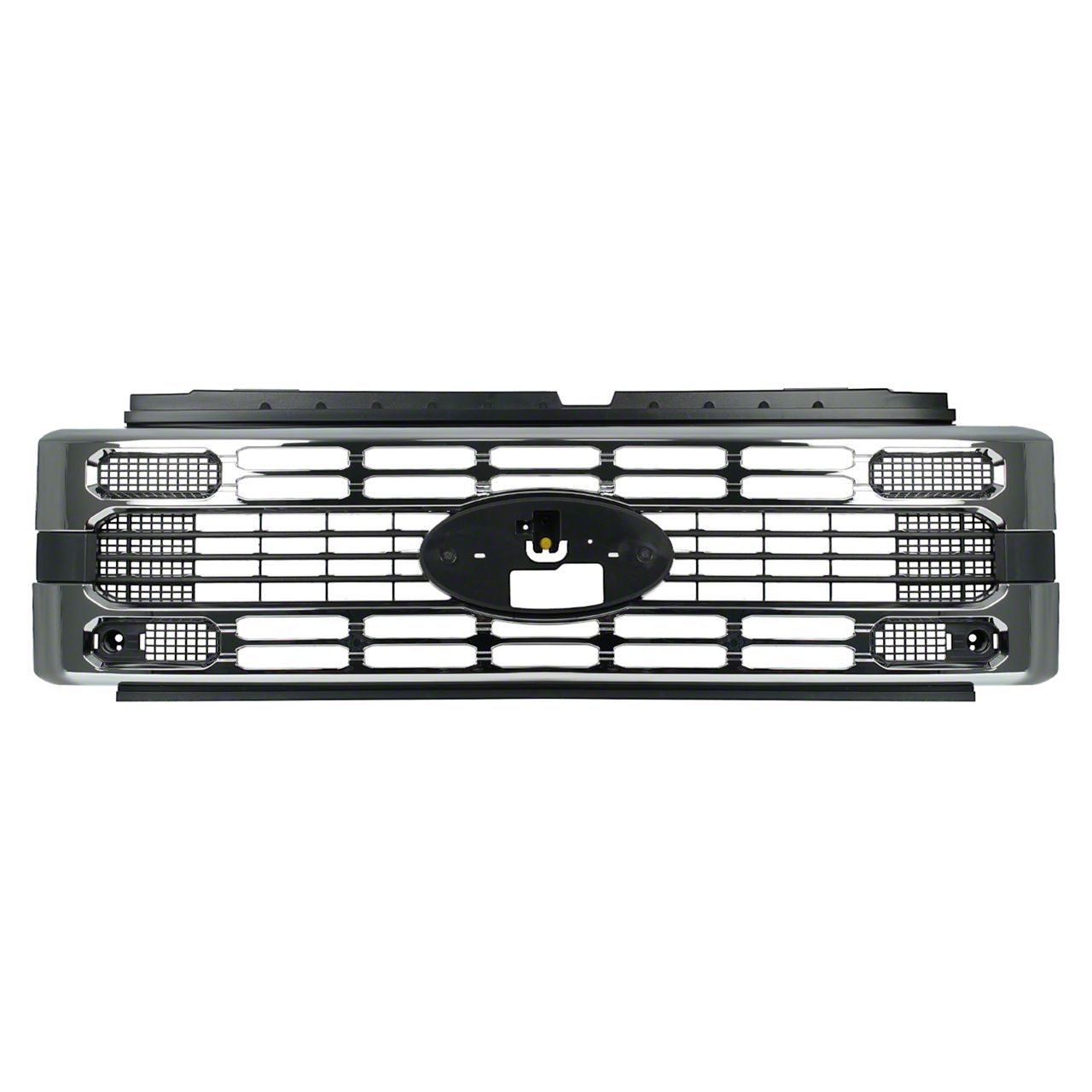 Modern Front-End Enhancement. The JC April Upper Grille is a stylish upgrade and direct replacement designed for 2023-2026 Ford F-250 Super Duty models, providing a polished chrome finish for a contemporary, eye-catching look. Built to refresh your truck’s appearance, this grille offers both form and function with a bolt-on installation and a pre-assembled emblem area for a seamless fit.