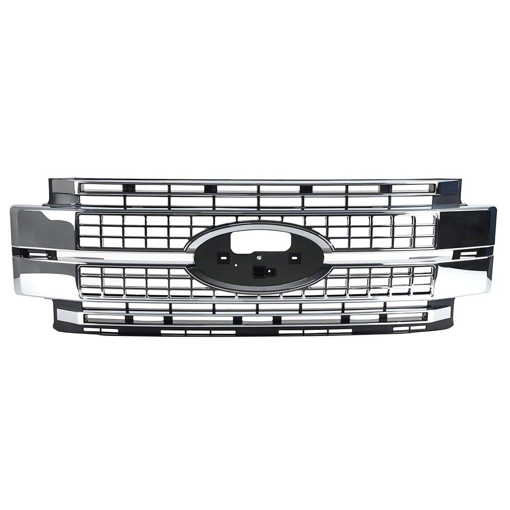 Upper Replacement GrillePlatinum StyleIncludes Pre-Assembled Emblem AreaImproves Front-End AppearanceDurable ABS Plastic ConstructionChrome FinishDirect Fit for OEM ReplacementStraightforward Bolt-On InstallationDrilling and Modification Not RequiredDesigned for 2017-19 Ford Super Duty