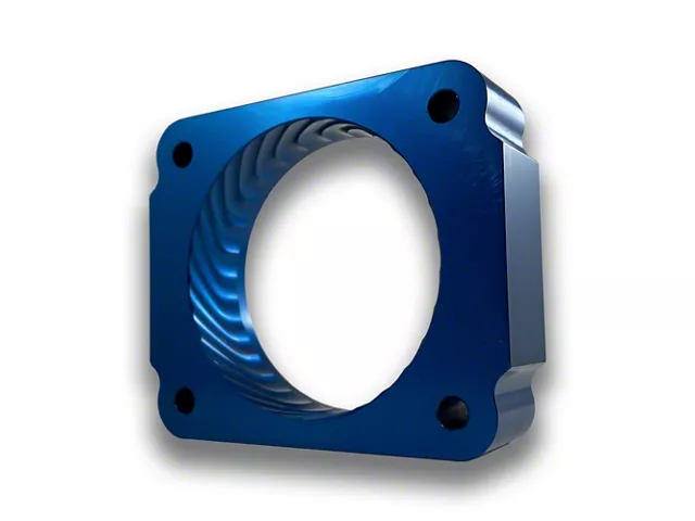 Heavy-Duty Construction. The Powr-Flo Throttle Body Spacer benefits from superior durability, thanks to its automotive-grade, heavy-duty billet aluminum construction. Further protected by a blue anodized finish, the spacer enjoys extended service life and consistent high performance in any driving conditions.