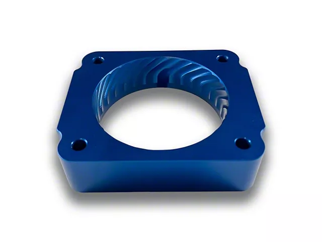 Heavy-Duty Construction. The Powr-Flo Throttle Body Spacer is made from automotive-grade billet aluminum to ensure durability, pressure resistance, and long service life. It also has a blue anodized finish making it more identifiable and resistant to corrosion and extreme temperature shifts.