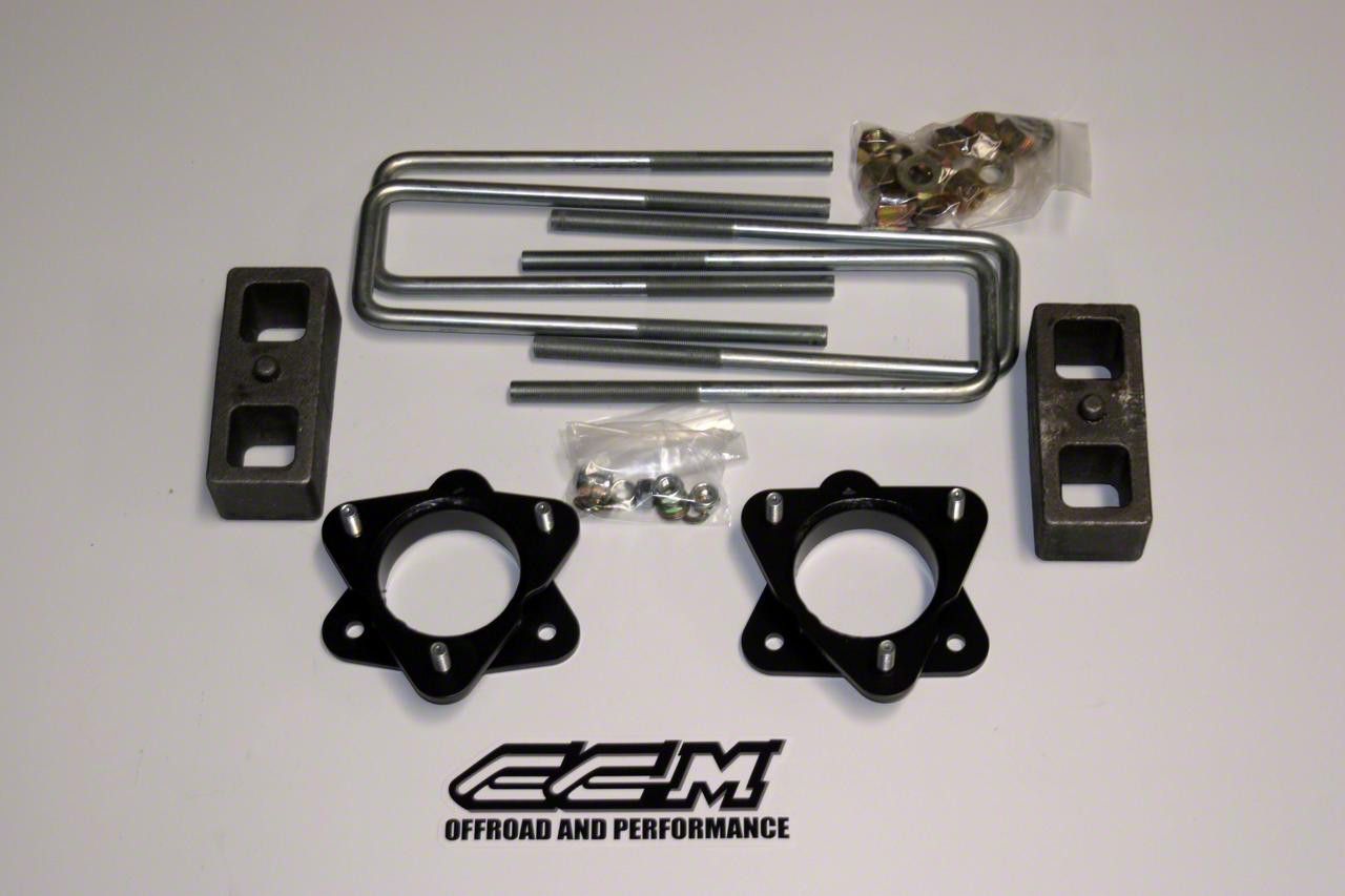 Construction. This CCM Offroad Lift Kit is designed from 0.25-inch steel, which is CNC laser cut with 0.25-inch wall high strength spacer tubing. There's offset mount spacing to get rid of the spring contact with the upper control arm. The little details even matter like OEM style, grade-10.9 pressed-in studs, not welded in bolts. The rear blocks are built from 6061 T-6 billet aluminum and the new rear U-bolts are also resilient.