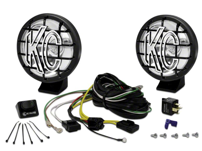 Additional Contents. The lights also includes protective and stylish ABS plastic stone guards, with the KC logo in white, to give additional protection against debris. You will also get a plug and play wiring harness with waterproof connections, an illuminated switch, and all of the mounting hardware that you'll need for an easy installation.