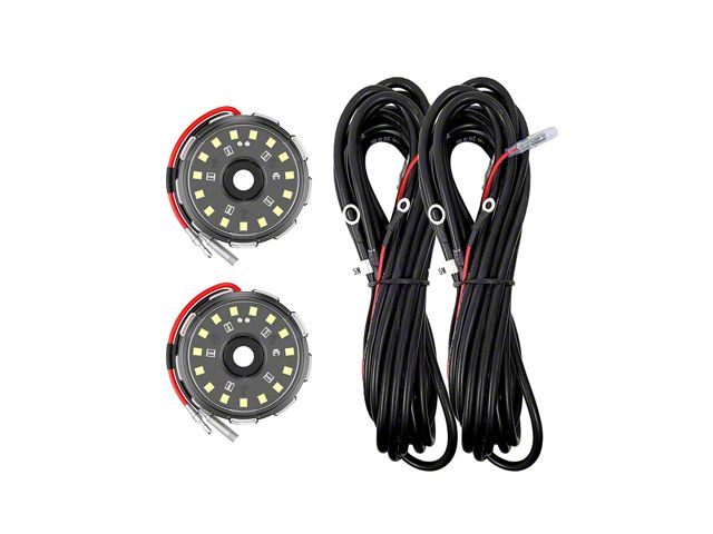 If you're looking for some extra output for your rock lights, using the KC 2-Light Add-On Cyclone Kit is a quick plug-n-play solution. Designed to be used in conjunction with your existing 6-Light Cyclone Rock Light Kit, this kit utilizes the bus bar and ground block from the 6-light Kit and makes adding extra Cyclones a breeze. Choose from 2.5m, 3.5m, or 5m length wiring depending on how far away the lights will be from your existing setup.