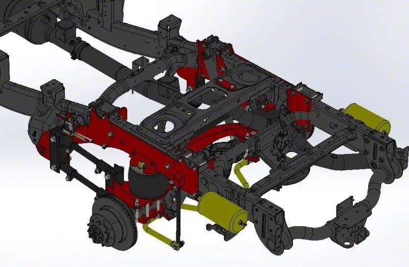 Enhanced Ride Comfort. The Kelderman Stock Height 4-Link Rear Air Suspension utilizes a sophisticated 4-link design, which eliminates the factory leaf springs of your RAM 3500, allowing for improved axle articulation, and a more stable and controlled ride both on and off-road. The air suspension system significantly reduces harshness and vibrations, delivering a smoother, more comfortable ride compared to traditional leaf spring suspensions, making it perfect for long hauls, towing, or off-road adventures.