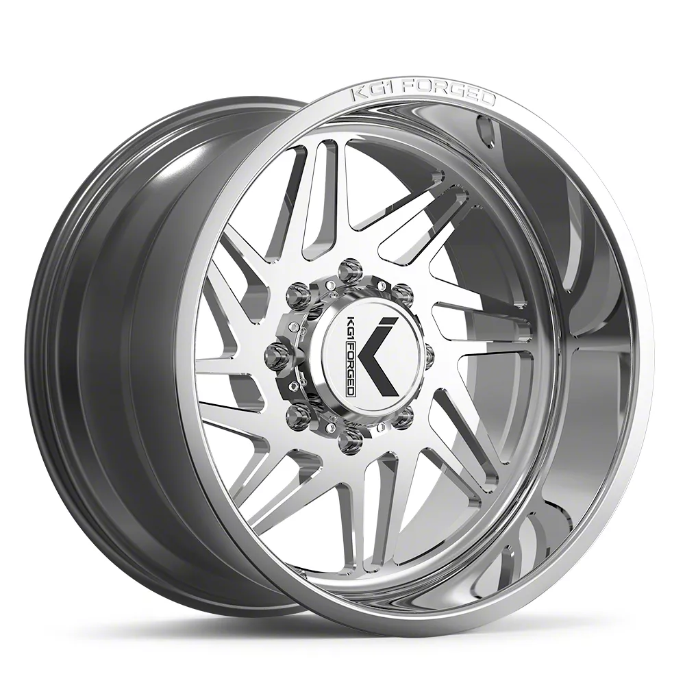 KG1 Forged DYNO Polished 8-Lug Wheel; Left Directional; 20x10; -18mm Offset This wheel brings a commanding presence with its distinct design, making it a bold choice for enthusiasts looking to upgrade their vehicle’s look. The premium finish and attention to detail reflect the high standards of KG1 Forged, giving any vehicle a modern and aggressive edge. Its styling pairs seamlessly with rugged builds or sleek street setups alike, elevating curb appeal with ease.
