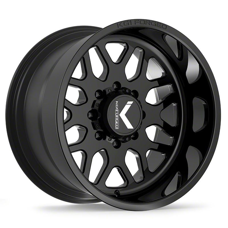 This 20x12 KG1 Forged VETERAN Gloss Black 8-Lug Wheel; 20x12; -44mm Offset is completed in a striking gloss black finish that will be the envy of everyone. For added looks and strength, there is a clear coat that protects against whatever the road throws at you.