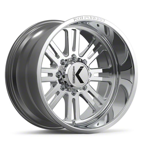The 22x12 KG1 Forged H8TER Polished 8-Lug Wheel; 22x12; -44mm Offset is completed in a sterling polished finish that will make everyone green with envy. For added protection and good looks, this wheel features a durable clear coat that is tough enough to stand up against the hazards of everyday driving.