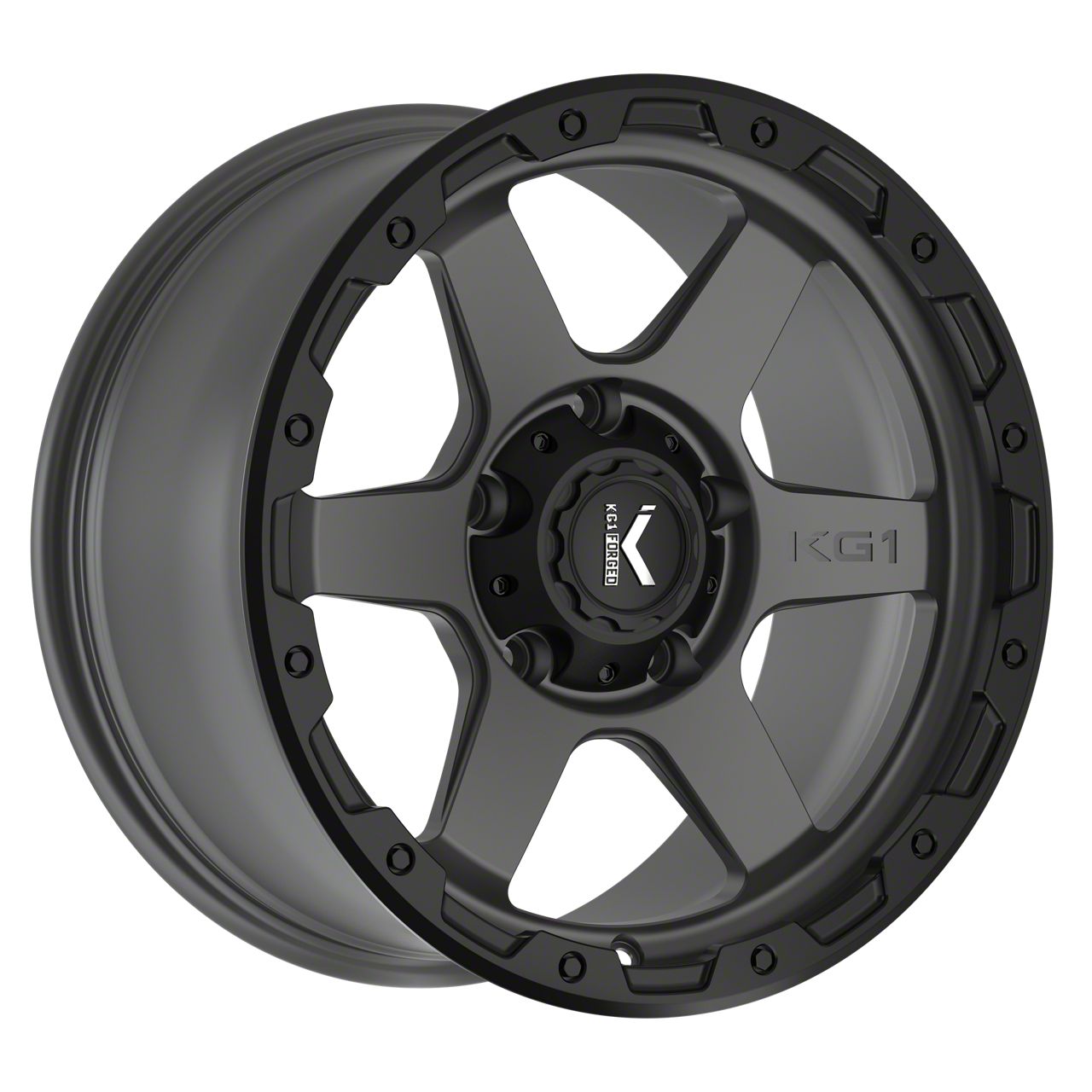 The 20x9.5 KG1 Forged LAUNCH Matte Anthracite with Black Ring 8-Lug Wheel; 20x9.5; -12mm Offset is completed in a matte anthracite finish with a black ring that will make everyone green with envy. This wheel features a durable clear coat that is tough enough to stand up against the hazards of everyday driving.