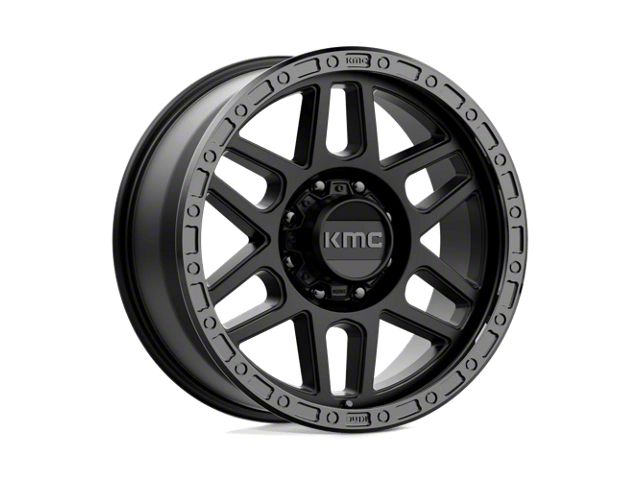 KMC Mesa Satin Black with Gloss Black Lip 8-Lug Wheel; 20x9; 0mm Offset - Experience the sleek elegance of the KMC wheel. Its matte black finish adds a touch of sophistication to your vehicle, enhancing its overall appearance without compromising on durability. Perfect for a variety of vehicle styles, this wheel is a testament to the brand's commitment to quality and aesthetic excellence.